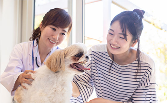 人の高齢化と同じように動物たちの寿命も犬14歳、猫14.2歳(2017年)と伸びてきており、それに伴う高齢動物の循環器疾患、腎臓疾患、腫瘍疾患なども増加しておりま す。当院ではそれに対応し的確に診断治療するため幅広く内科・循環器・腫瘍・歯科・皮膚科などを学び常に知識技術のアップデートを行い、診断するために必要な問診、視診、触診、指診、検便、尿検査、レントゲン検査、胸部腹部超音波検査、心電図、血圧測定などを適宜実施し、病気の原因にアプローチ、治療していきます。